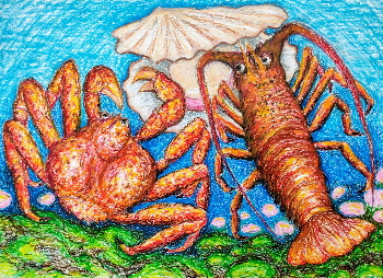 伊勢海老と蟹の食事
